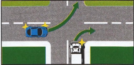 ໃນກໍລະນີໄຟສັນຍານຈະລາຈອນເປັນສີເຫຼືອງ ຮຸ່ງກະພິບເປັນຈັງຫວະຄືກັນທຸກເບຶ້ອງ ລົດຄັນໃດມີສິດໄປກ່ອນ?